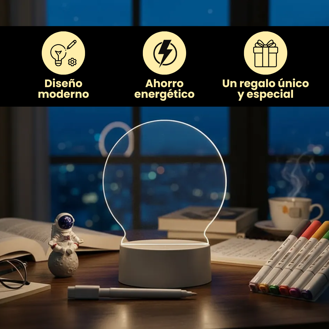 La Lámpara LED de escritorio con tablero acrílico no solo ilumina tu espacio, también te ayuda a organizar tus ideas y pendientes con estilo. Perfecta para estudiantes, profesionales y creativos que buscan productividad y diseño en su rutina diaria.